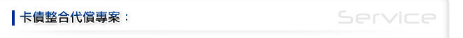 產品特色:(1) 整合多筆帳款(現金卡、信用卡債、信用貸款、二胎房貸等)